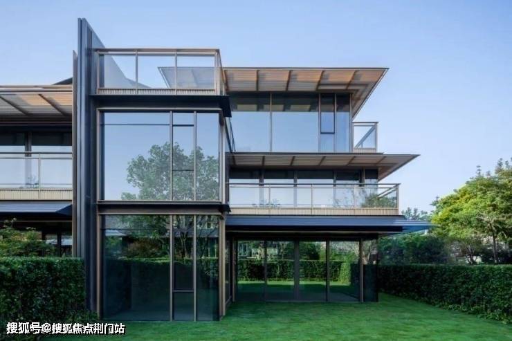 所以,乍一看到樾青岚的合院,那些大玻璃体块的前后交叠,悬挑露台的的上下穿插,其实有流水别墅或范斯沃斯住宅的“国际风格”。