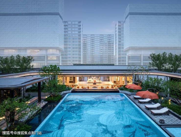 行至大堂,全景落地窗外漩光泳池碧波荡漾,倒映天光云影,泳池被绿植环抱宛若“绿洲岛屿”,瞬间将都市焦虑转化为度假松弛感。