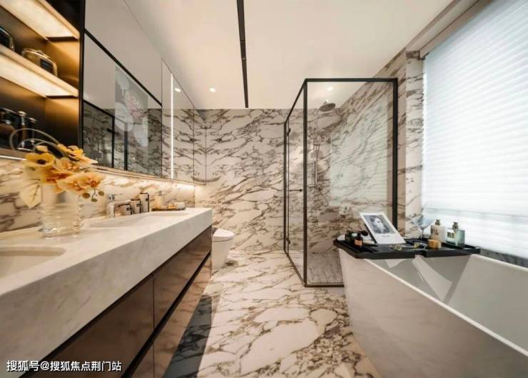甚至主卫,也是香港瑰丽客房洗手间的足本复刻,黑白灰水墨岩板,装点出一间“私人水疗美术馆”。真正的奢侈,就是要让最功能性的空间也值得驻足欣赏。