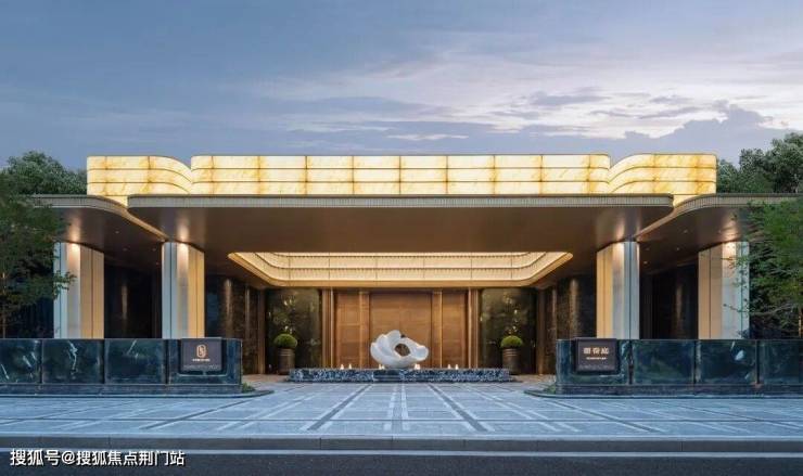 主入口门头宽约66米,高约10.6米,三段式透光云石吊顶宛若华盖加冕,四根芬迪白奢石立柱,将大宅序幕徐徐拉开。