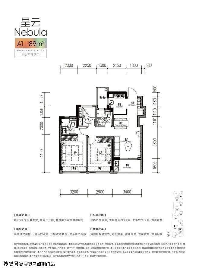 主力户型:89-116㎡精装三至四房,得房率最高82%