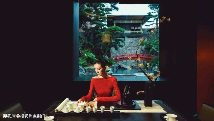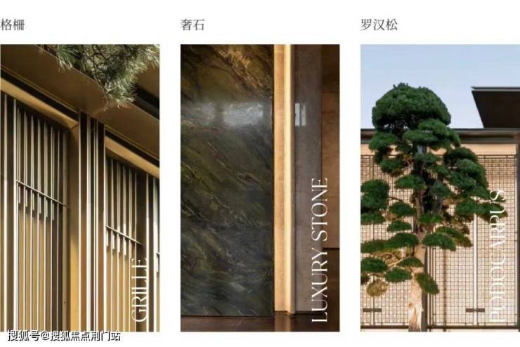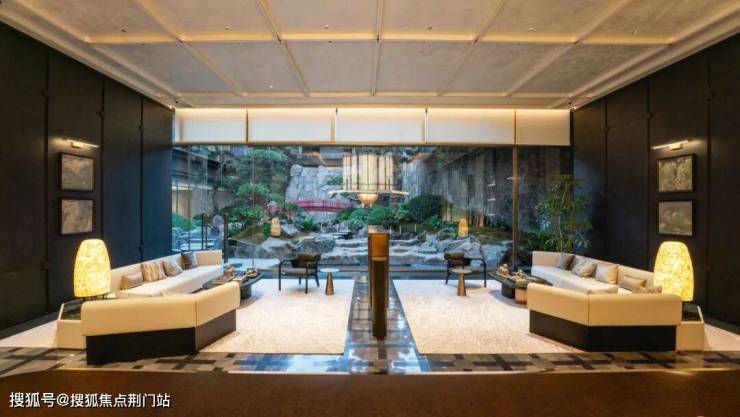 约60米全画幅门庭豁然展开,纳千年风雅于一境。两株超百岁树龄的罗汉松,跨越千里而来,静守世家门楣。金属格栅与天然奢石交织,光影流动间,勾勒出一幅现代东方的诗意长卷——天造一半,人造一半。
