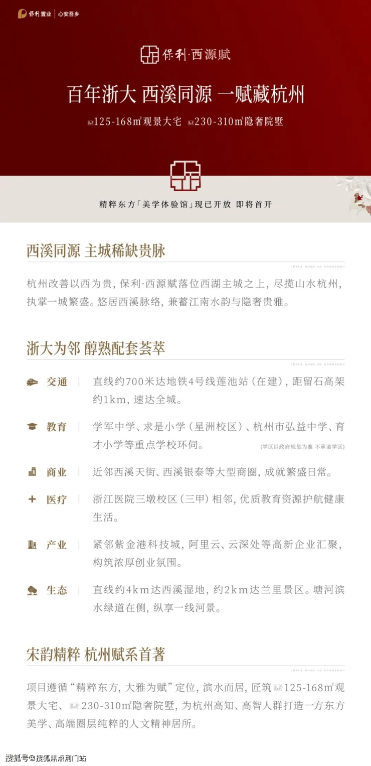 一座城市的风雅,源于历史深处的文化积淀。杭州城西,自古贵脉绵延,人文渊薮,于此文华沃土,保利置业以「赋」之名,执笔立著,致敬一座城市的厚重与未来。保利置业「西源赋」作为杭州首座赋系作品,以现代笔法续写东方居住意境,以匠心回应高端人居期待,启幕杭州居住新章。