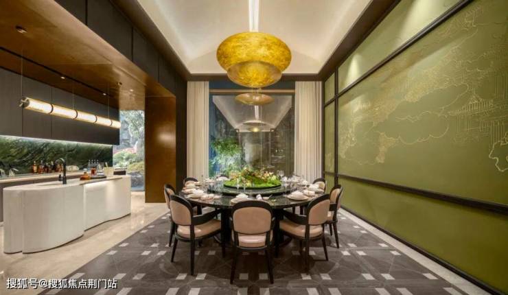 门庭之上,良渚玉琮纹样化作迎宾重檐,西湖水韵幻为龙鳞叠水。东方符号融入现代构造,诠释世家气度与文化底蕴。