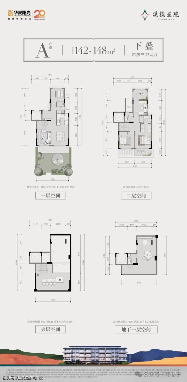 上拥露台下揽庭院 可享奢阔地下室华夏·溪揽星院上下双叠设计,上叠拥星空露台,下叠揽花园庭院,享双层地下室空间,并且地下室无需额外购买。此外,华夏·溪揽星院更以奢阔空间格局进阶生活享受,以C户型下叠为例,原户型面积加之花园、双层地下室等额外空间,最终实际使用面积可达近380㎡。