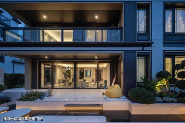 从当代艺术馆到板块唯一的国标恒温泳池、健身房、瑜伽室,溪映听庐的听庐雅舍使用了大量的玉石和金属,雅奢的质感拉满。
