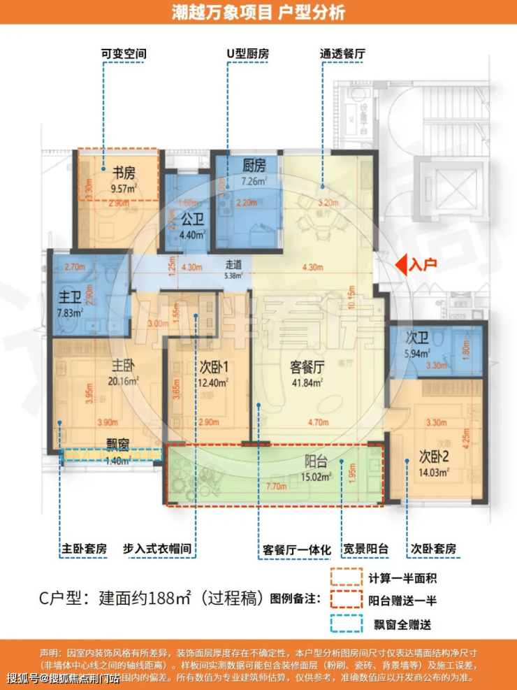 建面约188方户型: