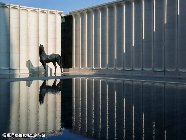 还没进门,就已如同开启了一段欧洲博物馆之旅。首先映入眼帘的是约12米高的意式拱券,建筑上运用了大量斯卡帕叠级美学,这种独特的“斯卡帕叠级”不仅体现在拱门造型之中,还藏在每一层挑檐上,仿石铝板叠加出整整九层折面,精妙雕琢出宛如运河涟漪般的水波纹路。