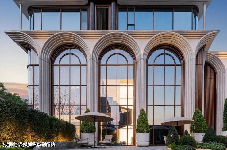 咏印明庐用自己的实践重新定义了下一个十年豪宅应有的样子:贝金米黄石材雕琢的意式拱券,搭配古铜色金属线条和大面玻璃,远看是运河畔一部恢弘的秩序史诗,近观则展现出东西方美学精髓的完美融合。