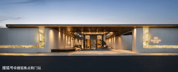 约43米尺度的恢宏门庭,两侧黑松耸立,尊崇感从上而下地铺洒。