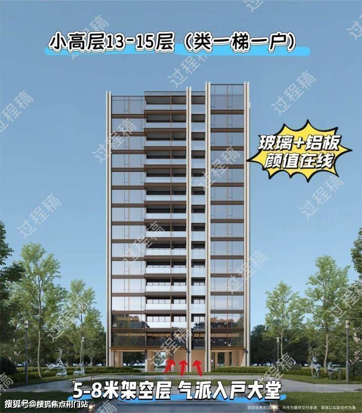 「璟逸」也是板块内首个四面铝板封面地标项目,高层外立面采用四面仿石铝板+茶金Low-E玻璃。