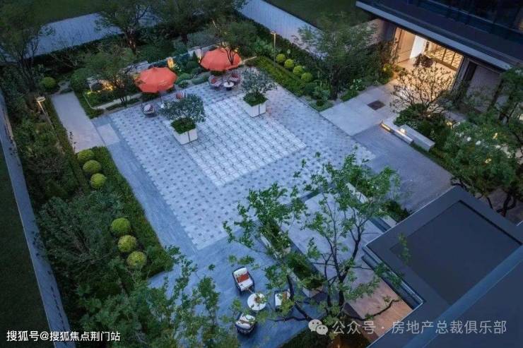 深入后场,邂逅自然之美与艺术之韵的都市宁静之境。中央漩光泳池,底部海棠花影寓意“团圆美满”,美不胜收。两侧乌桕树倩影婆娑,象征“长长久久”。铁冬青环绕四周,传递“健康长寿”的美好祝愿。超过7米的泳池社交吧台、下沉式围坐区,以及超过16米的跳泉叠瀑等元素,共同营造出度假风格的社交领地。