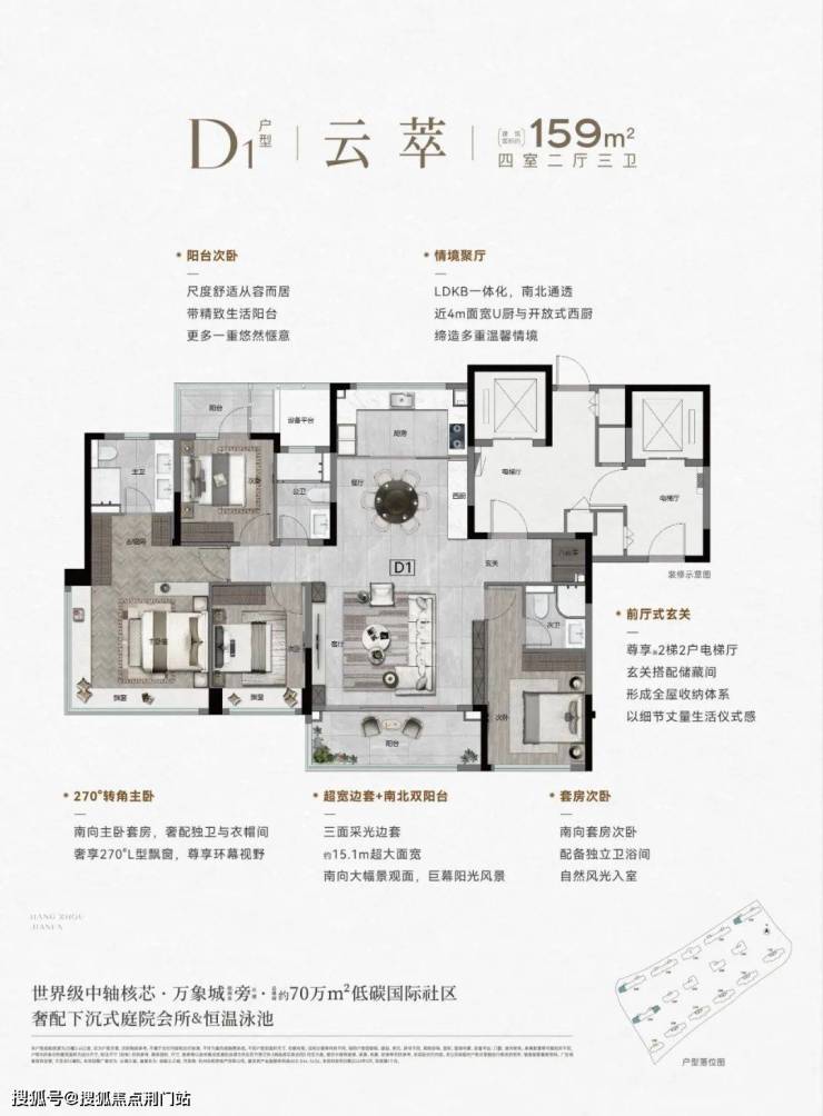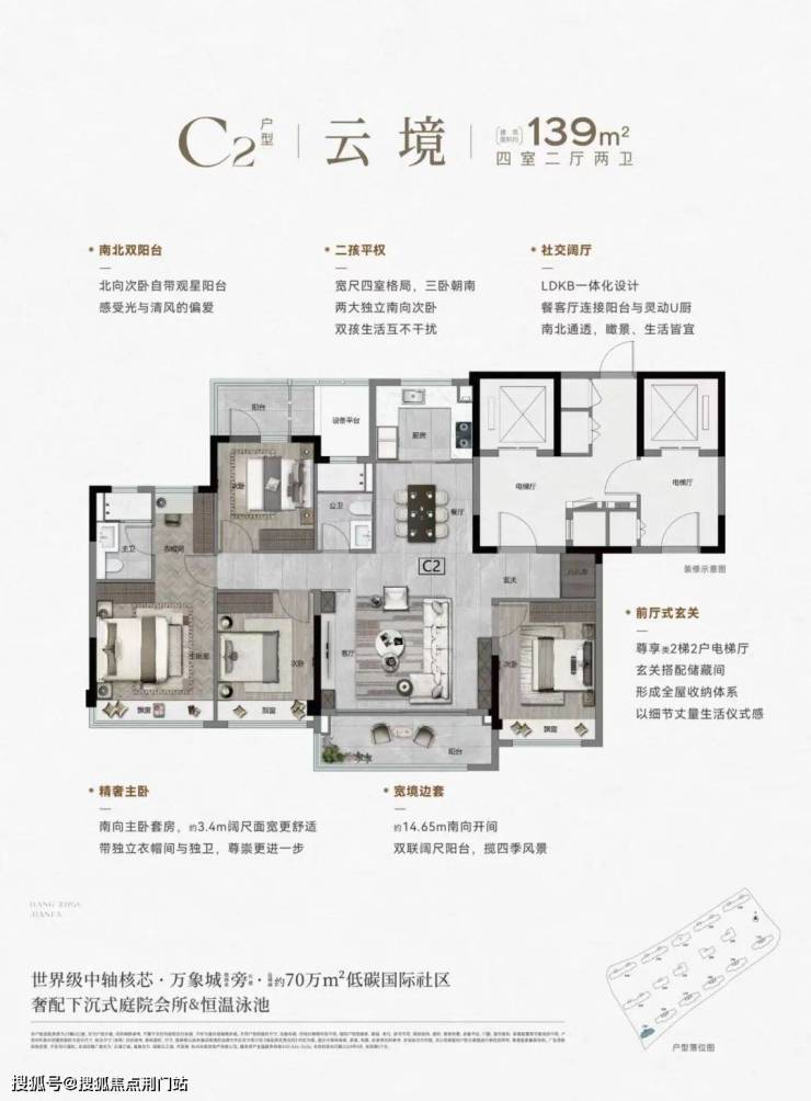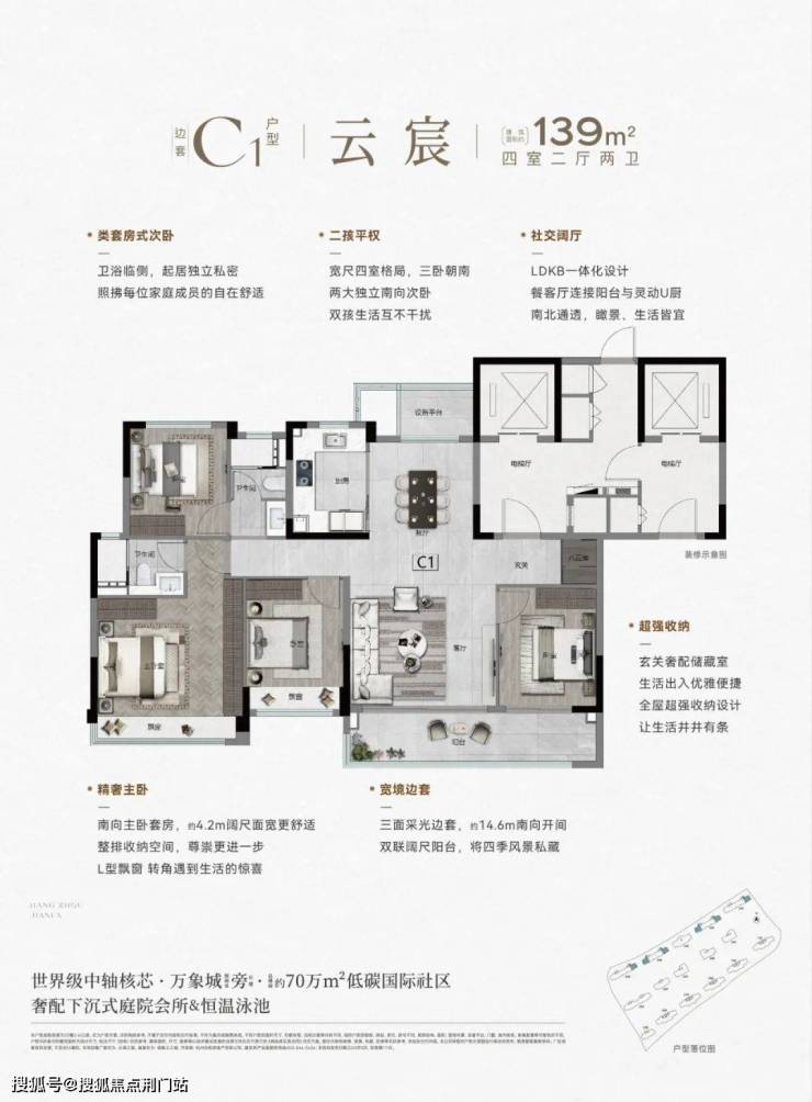 四面大面铝板+顶配精装修;300m三条地铁线+万象城