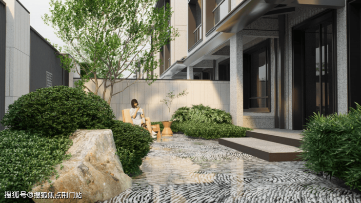 推开院门便是私家庭院,金翊·金云院以“一户一院,一院一景”的定制化设计,让庭院成为业主的“精神自留地”,在不同的庭院当中,景观的营造手法也都有着不同的创设。