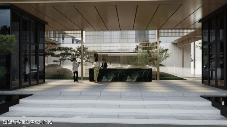中央景观区域,整个空间以中式“四水归堂”形制打造,寓意聚财纳气,凝聚家族精神。