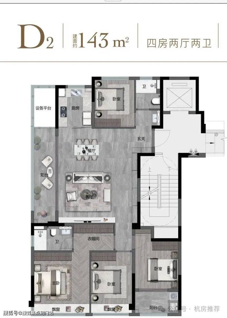 如果说前面的户型更多的体现了实用性,那么143方的户型还实现了尊贵感。