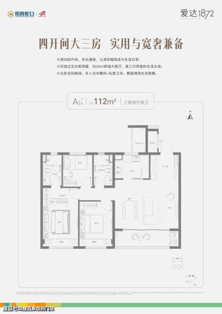A3 三房两厅两卫 约 112 ㎡