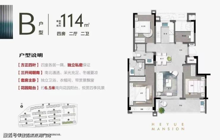 以前程和悦府首开的小高层为例,约114㎡户型拥有4房2卫,足以容纳三代同堂。
