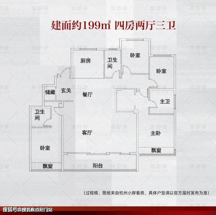 项目高层面积约199方,共2款同面积段的不同户型设计,并有户型图抢先奉送!