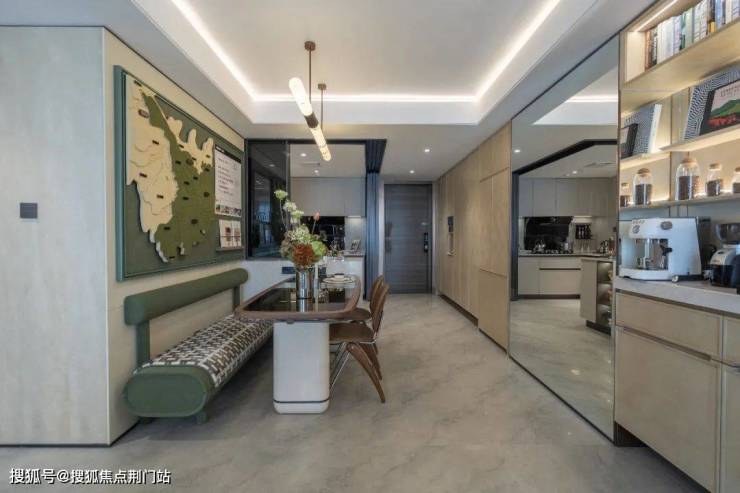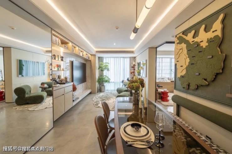 客厅的背景墙四周,不仅嵌满一面面吊柜和储物格,展示柜还装上灯带和玻璃门。你收藏的各种隐藏款Labubu,这里就是最好的舞台。春来晴翠园称之为“情绪收纳”。