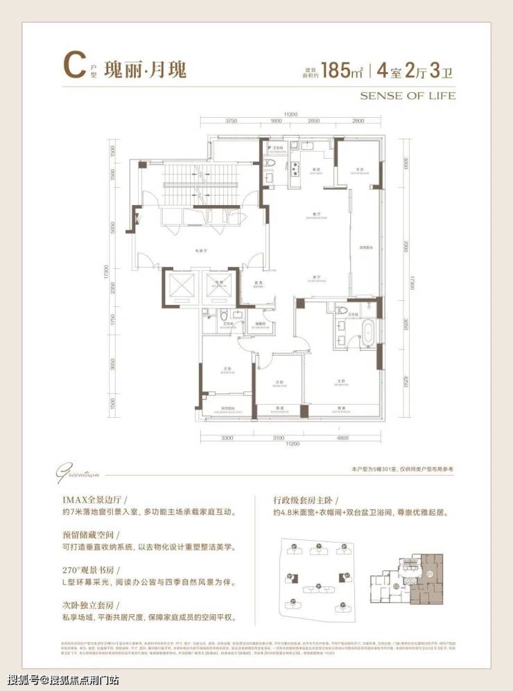 同时,不仅餐客厅有着约7米的落地门窗,书房与主卧还都坐拥270°采光面,任由晨光与暮色在家中流转,也撑起了豪门大宅的自信气场。