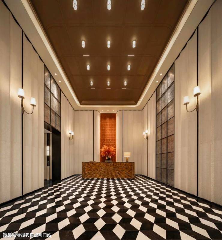 与之对应,一楼的单元门厅,也是同样风格,精准复刻香港瑰丽神髓。