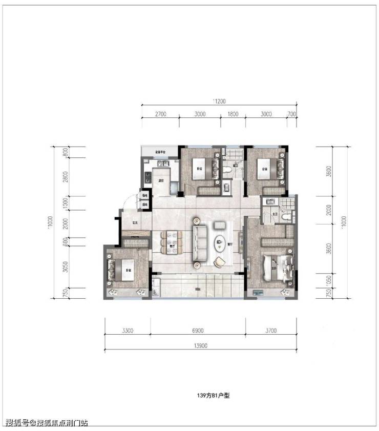 约127㎡经典四叶草户型,全明通透,4个功能间分别位于四角,正好契合了当下注重隐私的居住潮流。