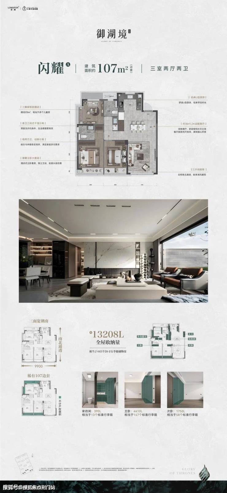 整个项目精装限价3.9万/㎡,建面约107㎡户型总价400万起,为滨江高净值人群提供更优置业选择。