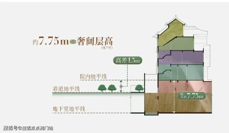 排屋地下室约7.75米,「首层化」地下室的创举性设计。