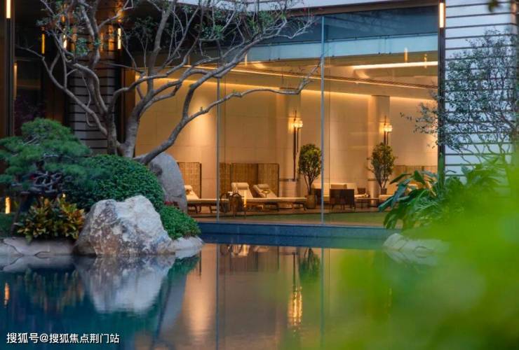 会所是豪宅的标配,云启玉渚共63套排屋和180套叠墅,却配置了约2700方的琉璃会馆,围绕中央的开阔山池和一道落差约6.4米高的飞瀑,布置了恒温泳池、双私宴厅、健身房、茶室,把中式大宅的仪式感与舒适度拉满,远超普通低密的营造标准。