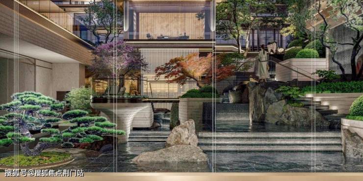 提取宋代建筑的“形”、“色”、“象”三重精髓,以当代材质重构极简秀丽、清雅飘逸的宋韵风骨,并萃取“画作、诗词、山石、莲韵、纹饰、色彩”灵感,再造宋韵立体山水景观,将“林泉高致”转译为当代生活诗篇。