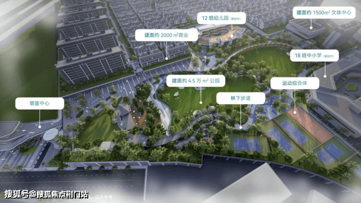 同时也是“人气配套中心”,沿公园设置了 幼儿园、九年一贯制学校、文体中心、邻里中心、约2000㎡商业街……