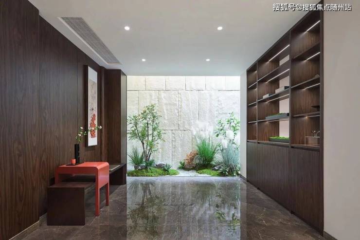靠近采光井的区域设置了围炉煮茶的品茶区,阳光下,亲密好友焚香品茶,从味觉、嗅觉、触觉、视觉上得到多重享受。