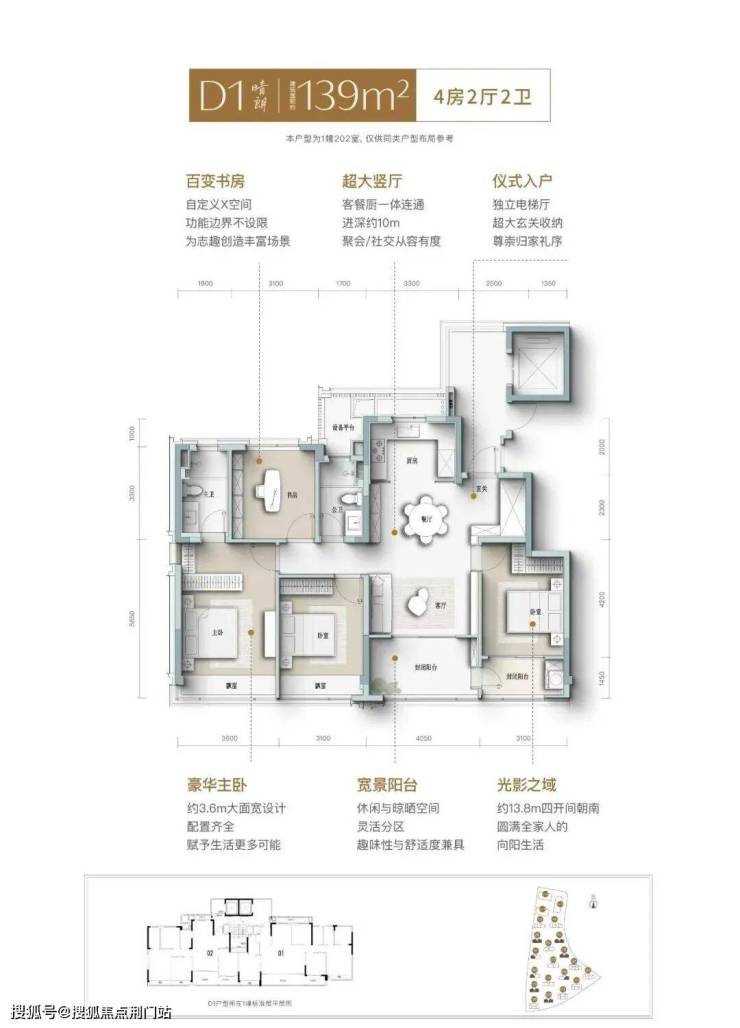 建面约139㎡南向四开间,引阳光肆意倾洒,LDK一体化宽厅,打破空间隔阂,成为家人互动、朋友欢聚的核心场域,餐厨开放式设计,让烹饪不再孤单,自定义X空间,实现“不为人生设限”,次卧家政阳台,兼顾实用与观景,约3.6米奢阔主卧,妥帖安放身心,精细化收纳,生活井然有序......
