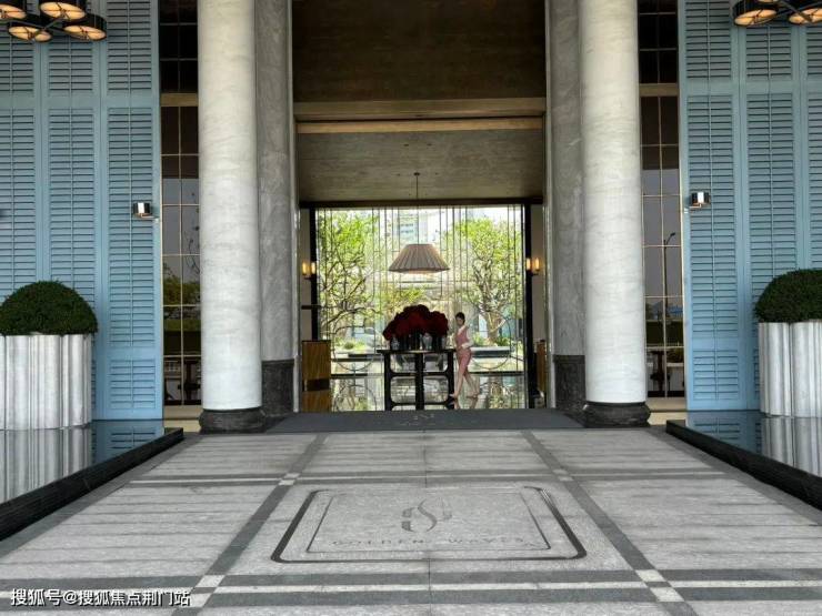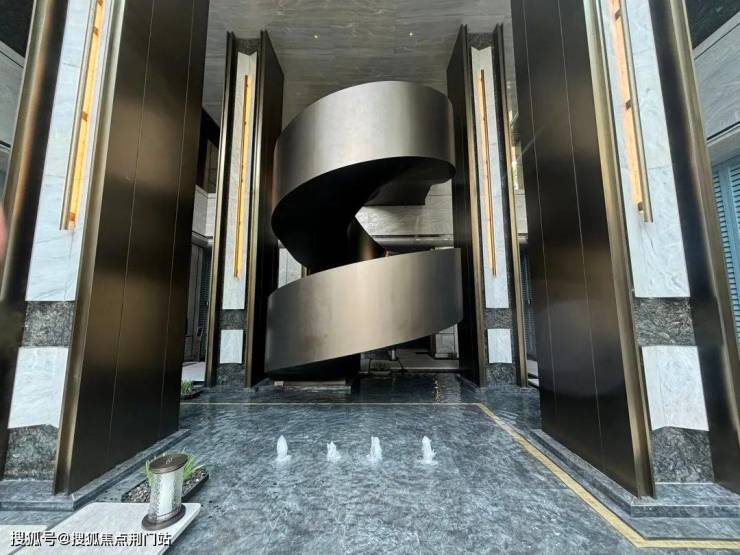 湖映金沙的外立面古典一些,它没有芝澜/玉澜那般华丽的玻璃幕墙,我觉得它们自己写的“金澜画境”还是准确的,就是金色的窗框层面分明,这是风格上的迥异,审美也不应千篇一律,重要的还是铝板+石材的运用,这在限价时期的金沙湖倒是不常见。