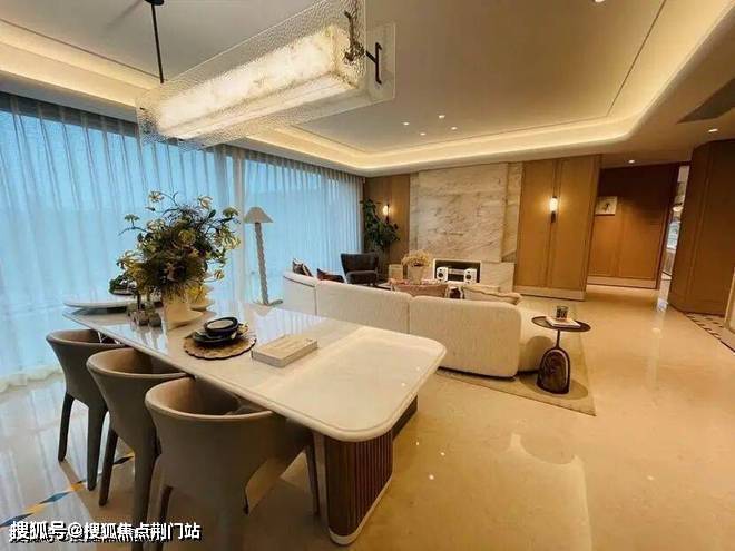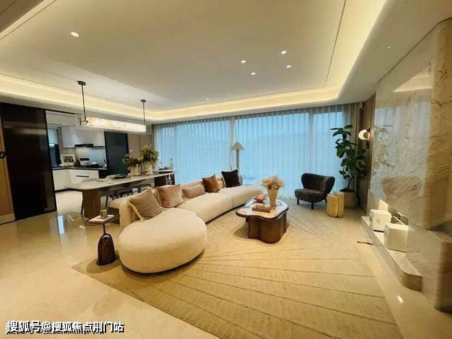 迎的是185㎡,样板房的设计中,餐厨房、书房和客厅几乎都打通,空间十分开阔。主卫采光绝佳,设计了转角圆弧玻璃窗。