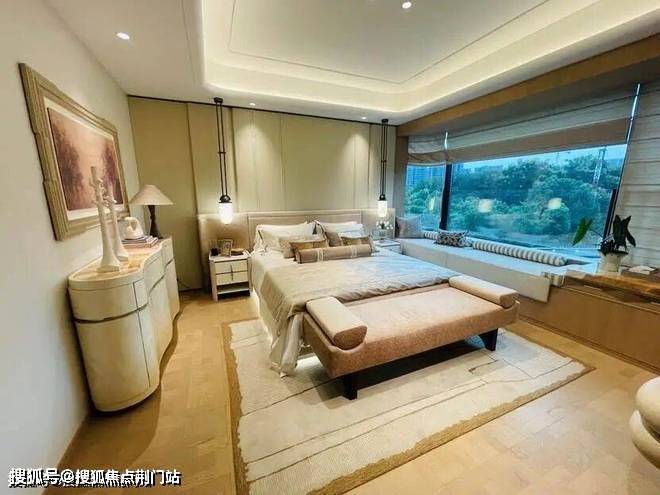 160㎡户型样板房的风格更柔和年轻化,主卧的套房设计非常大,包含了卧室和更私密的会客厅。