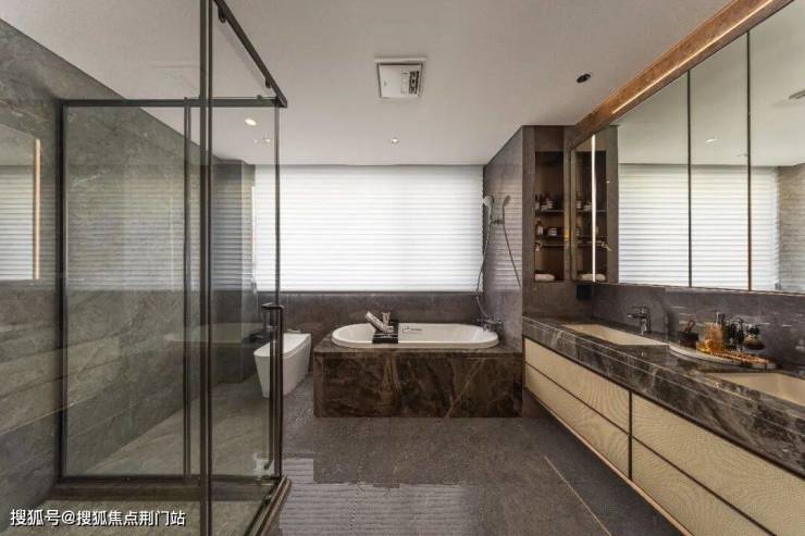 厨房配置老板烟机、三眼灶、蒸烤一体箱、洗碗机全套厨电,搭配防污岩板与大理石地面,让烹饪成为美学与实用的双重享受。主卧采用潮流鱼骨拼地板与皮革硬包,主卫配备科勒智能马桶、石材底座浴缸,居住体验更有“豪宅感”!