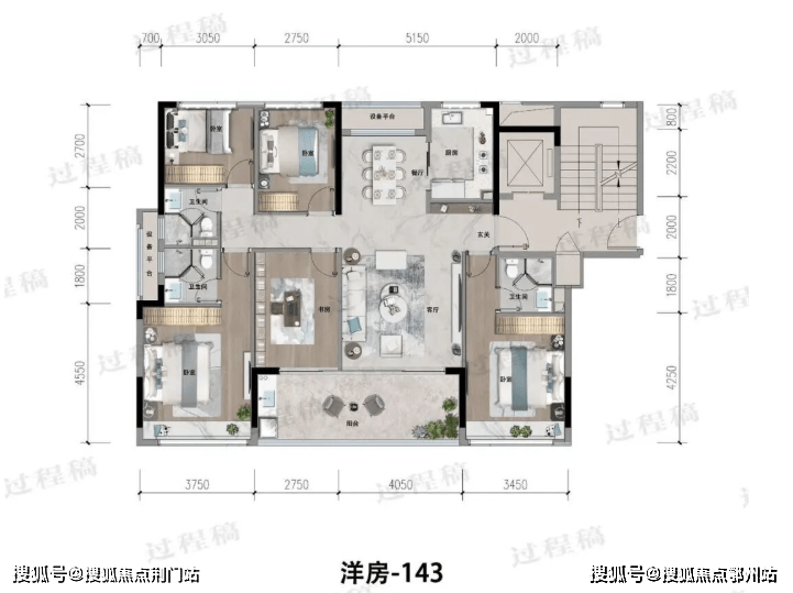 ·建筑面积约152-193㎡,19幢4叠、2幢6叠、4幢7层洋房