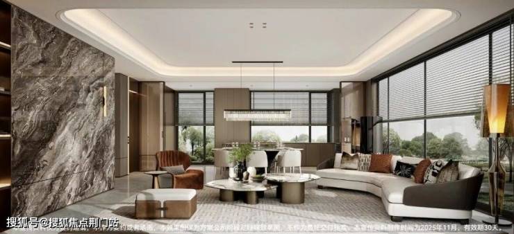 建面约197㎡下叠,南向约10.5米超阔开间,其中大尺度方厅构成家的核心场域,承载三代同堂的欢笑与相聚。