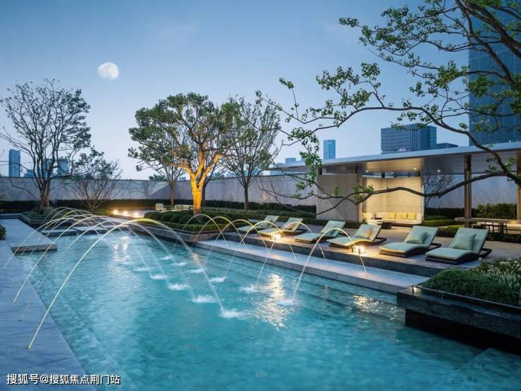 实景园林也迥异于大众。泳池综合体“绿钻之心”就像它的名字一样,池底通铺了大面青翠的马赛克瓷砖,搭配层次分明的景观和中灰色石材,造景既有巴黎的浪漫,又有杭州的温雅。