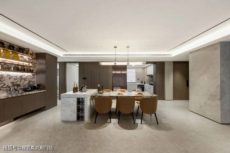 更奢侈的是,它竟然做了室内泛会所,豪宅里才会配备的私宴厅,行政酒廊吧台的背景墙选用了杭州中心同款的青玉石,还有创客空间、配置德扑桌的社交空间。