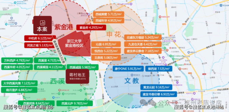 2.高潜板块——前有3.5公里蒋村8.8W/㎡地王,7W+近邻中杭府,土地潜在红利巨大