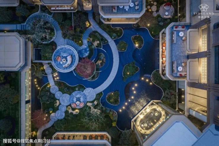 再看立体感的下沉式庭院,搭配各种石材、水系和罗汉松,层次极为丰富,自带高颜值,不管哪个角度看,都美炸了。