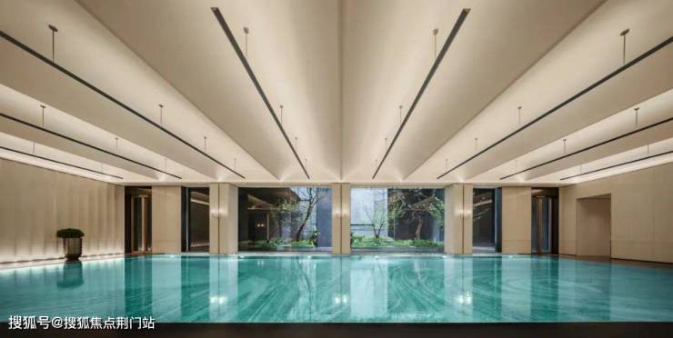 健身房、瑜伽馆、恒温泳池位于生活馆一侧地下一层,全景落地窗将下沉庭院自然景观引入室内,让生命在律动中与自然同频。