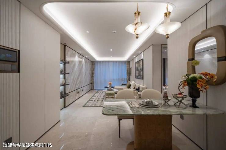 还有各种高级材料的运用,如维多利亚白石材、白玫瑰石材、地面拼花石材、土耳其雪花白石材、宝格丽黑石材、绿野仙踪岩板、贝母漆、皮革硬包等。
