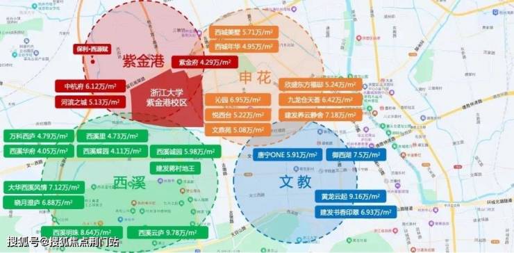 以紫金港校区为圆心,3公里范围内形成“城西学府改善住区”,包括保利置业西源赋,也包括楼面价8.8万的蒋村低密项目,以及二手房市场佼佼者西溪诚园、中杭府、河滨之城,圈层斐然。
