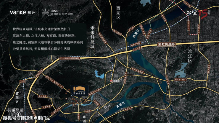 通过江滨东大道、彩虹快速路等便捷交通网络,与市中心无缝对接,仅需约20公里车程即可畅达滨江区,轻松融入杭州半小时经济生活圈。
