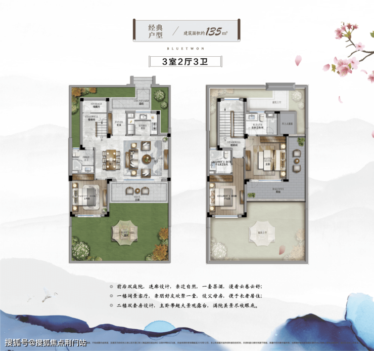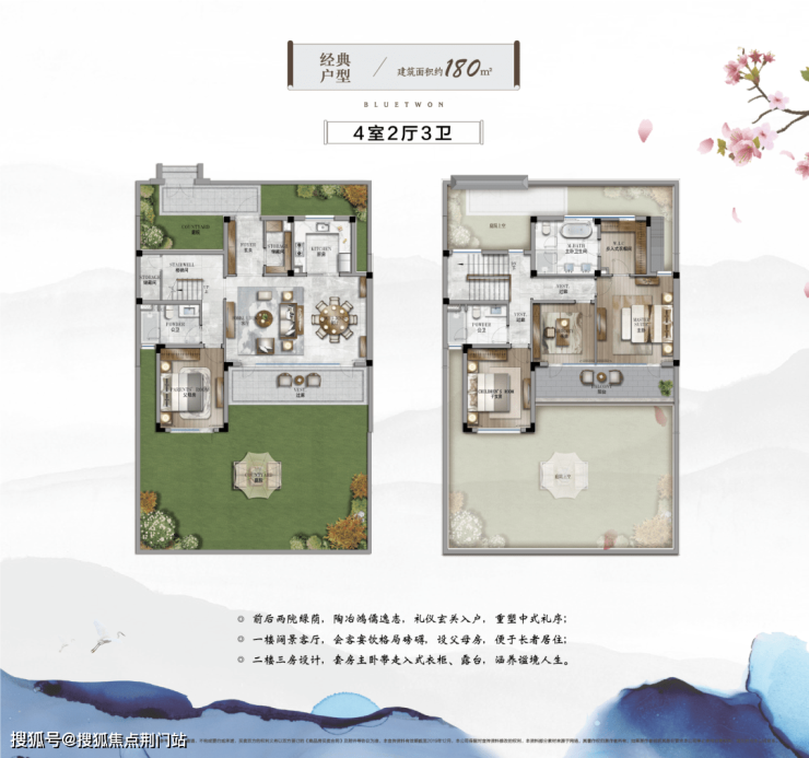 春风十里是蓝城集团择址安吉县城西南生态谧境,打造的健康生活小镇,地块容积率仅0.44,绿地率37.2%,营造总建筑面积约13万方山水低密住区,规划中式合院及花园洋房两类产品。其中,一期中式合院面积约95-180方,主力户型95-135方,庭院面积60-280平米不等,均为精装修交付。