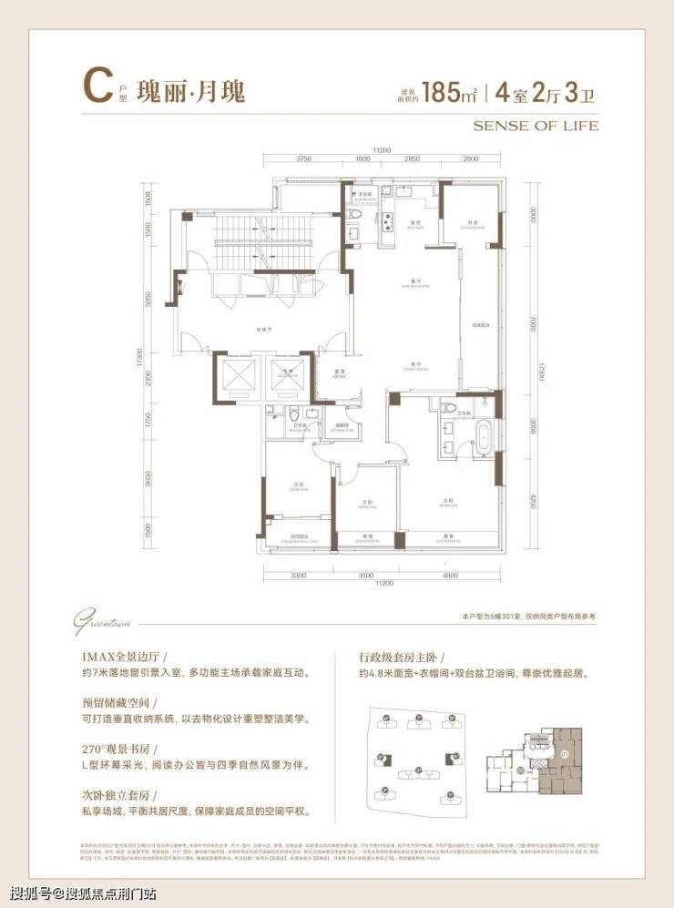 同时,不仅餐客厅有着约7米的落地门窗,书房与主卧还都坐拥270°采光面,任由晨光与暮色在家中流转,也撑起了豪门大宅的自信气场。